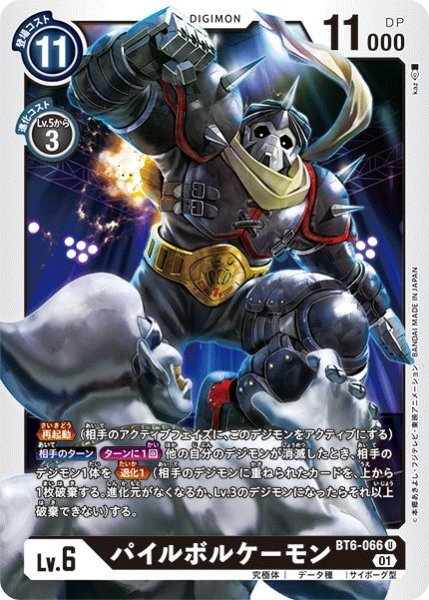≪再起動≫(相手のアクティブフェイズに、このデジモンをアクティブにする)【相手のターン】[ターンに1回]他の自分のデジモンが消滅したとき、相手のデジモン1体を≪退化1≫(相手のデジモンに重ねられたカードを、上から1枚破棄する。進化元がなくなるか、Lv.3のデジモンになったらそれ以上破棄できない)する。