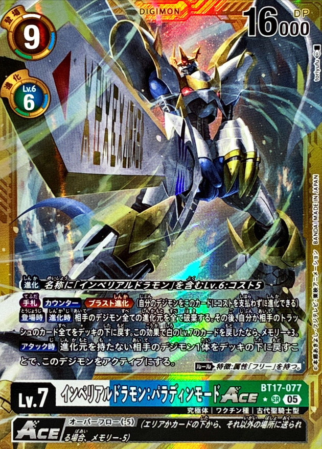 〔状態C〕(05)(パラレル/金枠/AD1収録)インペリアルドラモン:パラディンモードACE【SR-P】{BT17-077}《多》