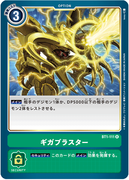【メイン】相手のデジモン1体か、DP5000以下の相手のデジモン2体をレストさせる。