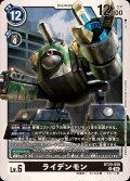 上段テキスト ≪衝突≫≪ブロッカー≫【お互いのターン】[ターンに1回]相手のデジモンが効果で進化したとき、相手のデジモン1体を≪退化1≫。【消滅時】登場コスト4以下の相手のデジモン/テイマー1体を消滅…
