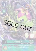 上段テキスト 【登場時】【アタック時】自分のデッキの上から3枚破棄する。【自分のターン】自分のトラッシュ3枚ごとに、このデジモンをDP+1000。【消滅時】相手の手札を1枚見ないで破棄…