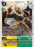 上段テキスト 【消滅時】自分のトラッシュから、「テリアモン」1枚をコストを支払わずに登場できる。 下段テキスト 【お互いのターン】このデジモンがレスト状態の間、このデジモンをDP…