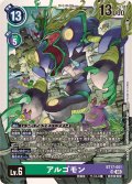 上段テキスト Lv.5の「アルゴモン」:コスト4【登場時】【進化時】自分のトラッシュから、Lv.5以下の「アルゴモン」4枚までをこのデジモンの進化元の下に置ける。その後、Lv.合計4…