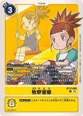 上段テキスト 【自分のターン】効果で自分のデジモンの進化元にテイマーカードが置かれたとき、このテイマーをレストさせることで、メモリー+1。【相手のターン終了時】[ターンに1回]このテ…