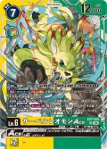 上段テキスト 【登場時】相手のデジモン1体を≪退化1≫。【進化時】Lv.5以上の相手のデジモンがいないなら、メモリー+1。 下段テキスト 【相手のターン】[ターンに1回]相手のデジモンがアタックし…