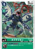 上段テキスト [特殊進化] 〔進化〕「カプリモン」:コスト0 [効果] 【登場時】【消滅時】自分のデッキの上から3枚オープンする。その中の「ベルフェモン」/「ギズモン」の記述があるカード1…