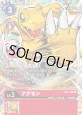 上段テキスト 名称に「アグモン」を含むLv.3:コスト2≪ブロッカー≫(このデジモンはブロックタイミングでブロックできる) 下段テキスト 【お互いのターン】[ターンに1回]アタック…