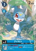 上段テキスト 「ブイモン」:コスト3【セキュリティ】デジモン1体を≪退化1≫。バトル終了時、自分のデジモン1体をこのカードに進化コストを支払わずに進化できる。≪ブロッカー≫≪ア…