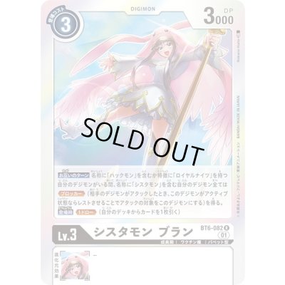 【お互いのターン】名称に「ハックモン」を含むか特徴に「ロイヤルナイツ」を持つ自分のデジモンがいる間、名称に「シスタモン」を含む自分のデジモン全ては≪ブロッカー≫(相手のデジモンがアタックしたとき、このデジモンがアクティブ状態ならレストさせることでアタックの対象をこのデジモンにする)を得る。【登場時】≪1ドロー≫(自分のデッキからカードを1枚引く)