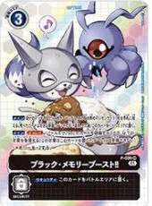 【メイン】自分のデッキの上から4枚オープンする。その中の黒のデジモンカード1枚を手札に加える。残ったカードは好きな順番でデッキの下に戻す。その後、このカードをバトルエリアに置く。【メイン】≪ディレイ≫(バトルエリアのこのカードを破棄することで、以下の効果を発揮する。この効果はこのカードを置いたターンには発揮できない)・メモリーを+2する。
