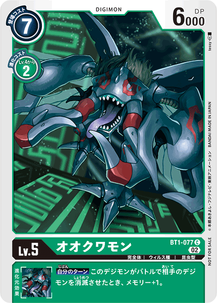〔状態A-〕(02)(illus:tessy)オオクワモン【C】{BT1-077}《緑》 [〔状態A-〕オオクワモン]