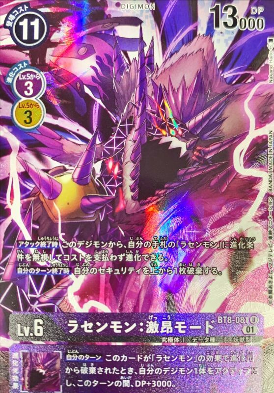 【アタック終了時】このデジモンから、自分の手札の「ラセンモン」に進化条件を無視してコストを支払わず進化できる。【自分のターン終了時】自分のセキュリティを上から1枚破棄する。
