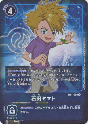 【自分のターン開始時】メモリーが2以下のとき、3にする。【自分のターン】青の自分のデジモンが登場したとき、このテイマーをレストさせることで、相手のデジモン1体の進化元を、下から1枚破棄する。
