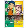 【メイン】自分のデッキの上から3枚オープンする。その中の緑のデジモンカードとテイマーカード1枚ずつを手札に加える。残りはデッキの下に戻す。その後、このカードをバトルエリアに置く。【メイン】≪ディレイ≫・自分の手札から、「テリアモン」/「ロップモン」1枚をコストを支払わずに登場できる。