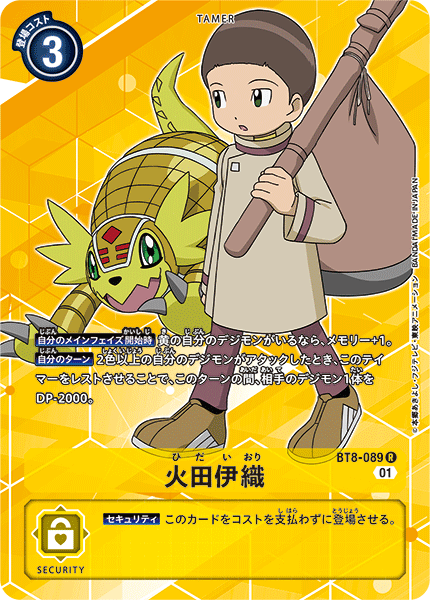 【自分のメインフェイズ開始時】黄の自分のデジモンがいるなら、メモリー+1。