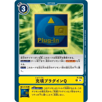 【お互いのターン】このデジモンがバトルで消滅するとき、このデジモンの進化元から、「充填プラグインQ」1枚をセキュリティの下に置くことで、消滅しない。