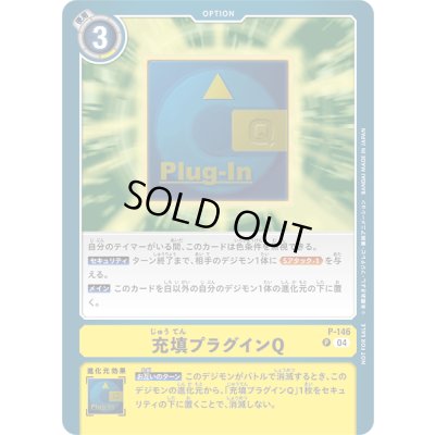 【お互いのターン】このデジモンがバトルで消滅するとき、このデジモンの進化元から、「充填プラグインQ」1枚をセキュリティの下に置くことで、消滅しない。
