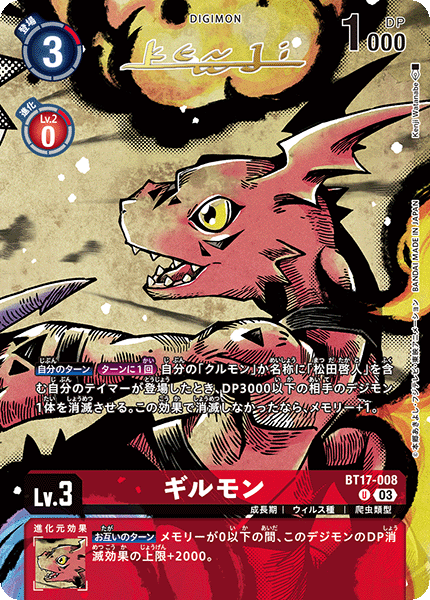 〔状態B〕(03)(サイン箔押し/illus:KenjiWatanabe)ギルモン【U-P】{BT17-008}《赤》 [〔状態B〕ギルモン]