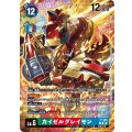 【セキュリティ】このカードをコストを支払わずに登場させる。【自分のメインフェイズ開始時】自分のデジモン/テイマー1体を手札の特徴に「ハイブリッド体」/「ヒーロー」を持つデジモンカードに進化できる。名称の異なる赤の自分のテイマー1体ごとに、この効果で支払う進化コスト-1。【自分のターン】[ターンに1回]相手のセキュリティが減ったとき、自分の手札から、赤のテイマーカード1枚をコストを支払わずに登場できる。