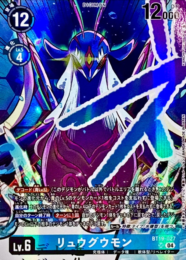 ≪デコード《青Lv.5》≫(このデジモンがバトル以外でバトルエリアを離れるとき、このデジモンの進化元から、青のLv.5のデジモンカード1枚をコストを支払わずに登場できる)
